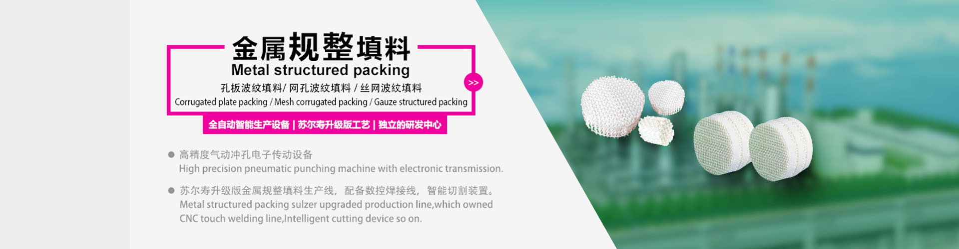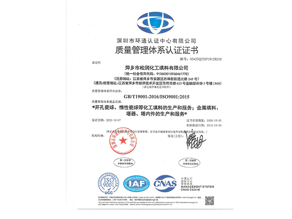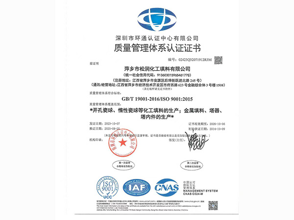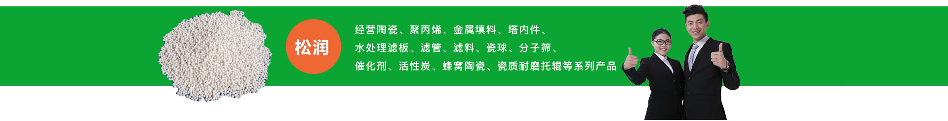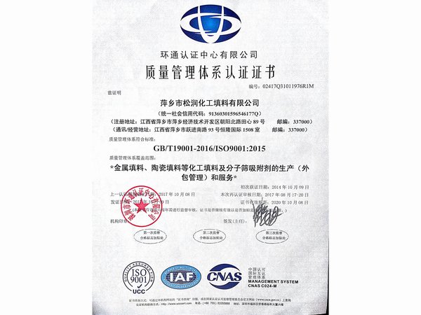 - 萍鄉市松潤化工填料有限公司位于江西省萍鄉市國家經濟開發區西區,是專業生產、經營陶瓷、聚丙烯、金屬填料、塔內件、水處理濾板、濾管、濾料、瓷球、分子篩、催化劑、活性炭、蜂窩陶瓷、瓷質耐磨托輥等系列產品的民營企業。所有產品由國家非金屬材料和設備質量監測中心監測檢驗認證。公司現有員工280人,其中有高、中級職稱技術人員36人。工藝先進,技術力量雄厚,產品質量可靠,配... ...